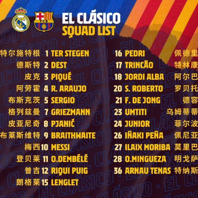 巴萨的阵容体能无疑受到国际比赛周影响,好在并无主要球员因此受伤。目前确认缺席的球员只有长期伤缺的安苏·法蒂和库蒂尼奥。皮克和塞尔吉·罗伯托本周已经随队训练,并且最终入选了比赛大名单,但是否上场要到比赛时方能揭晓。不少球迷对巴萨的实战状态存有疑虑,上轮面对实力孱弱的巴拉多利德,巴萨不但进攻步调有些凌乱,防守的稀松程度更让人心惊胆战。巴拉多利德全场至少获得5次破门良机,但无一例外都挥霍掉了。巴萨最终凭借登贝莱在全场补时阶段的绝杀斩获3分,然而比赛中数次有利于巴萨的判罚引起巨大争论。如果巴萨在这场的表现不是偶发事故,那可要当心决心背水一战的皇马了。